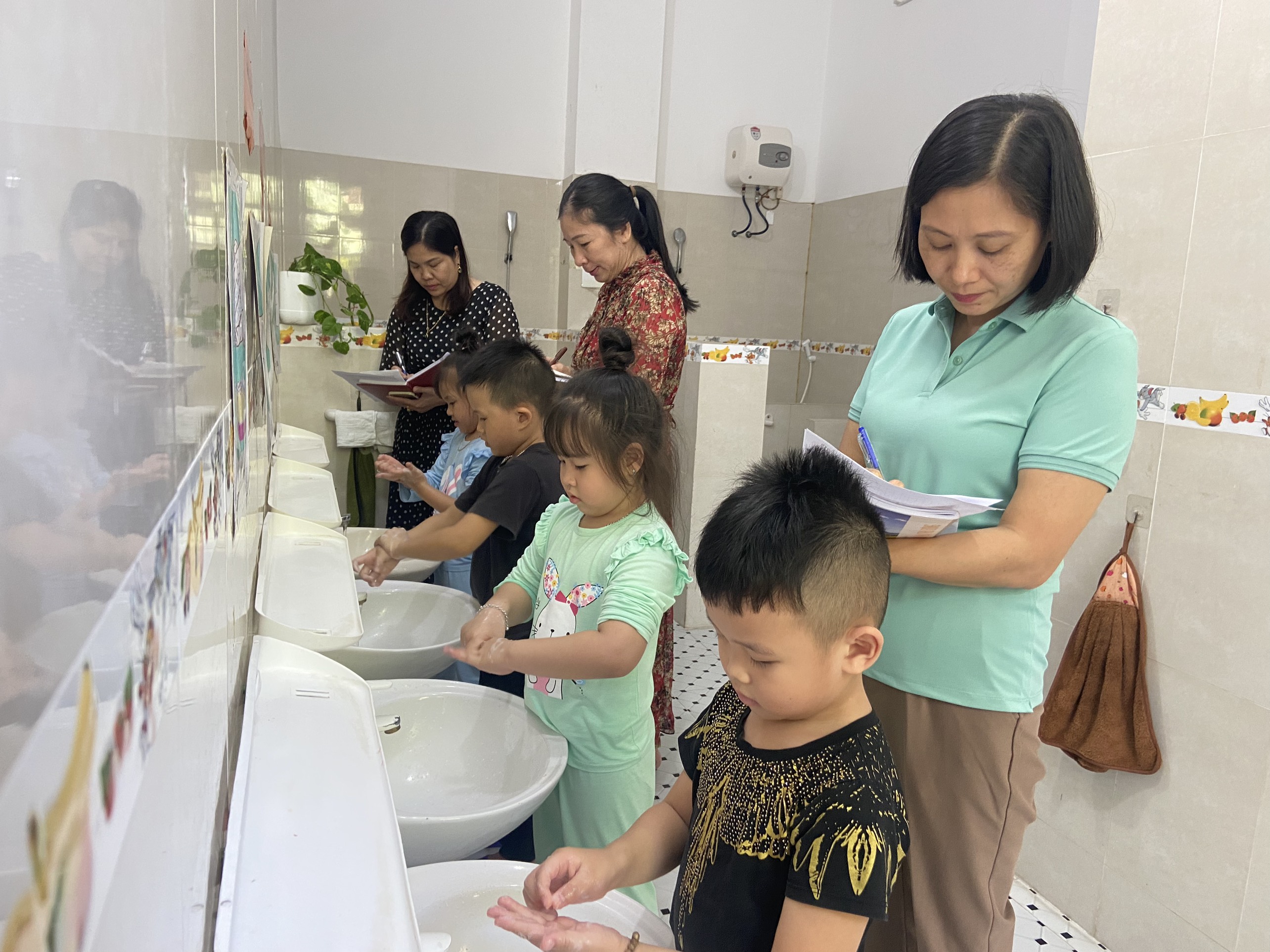 Công tác chăm sóc giáo dục trẻ trong trường mầm non là công tác được đặt lên hàng đầu. Ngoài việc học và chơi trẻ còn được các cô giáo dạy một số kỹ năng cần thiết tự phục vụ bản thân. Một trong các kỹ năng mà được các giáo viên dạy cho trẻ ngay từ đầu năm học đó là việc nhận biết các ký hiệu đồ dùng cá nhân của trẻ, kỹ năng rửa mặt, rửa tay được các cô đặc biệ quan tâm. Bên cạnh đó việc sắp xếp đồ dùng, đồ chơi, tạo môi trường hoạt động cho trẻ cũng được các giáo viên chú trọng. Kiểm tra nền nếp đầu năm học là một việc làm không thể thiếu trong hoạt động của trường mầm non. Ngày 12-14/10/2022 BGH nhà trường cùng các đồng chí tổ trưởng chuyên môn đã đi kiểm tra nền nếp đầu năm các lớp nhằm đánh giá việc thực hiện công tác chuyên môn và nâng cao chất lượng chăm sóc giáo dục trẻ trong trường học.